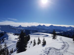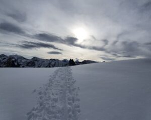 Im Winter verspüren Mitglieder und Freunde des GC Emmental immer wieder mal Lust auf ein bezauberndes Naturerlebnis, auf echten Schnee, etwas Blockhüttenromantik, Geselligkeit und ein bisschen Abenteuer. Darum ergreifen Ueli und Ka jeweils die Initiative und laden zu einer Schneeschuhtour ein. Sie entführen Naturbegeisterte in die winterliche Wildnis einer der grössten Moorlandschaften der Schweiz, in die Heimat von Auerhuhn und Schneehase auf der sonnigen Südseite von Hohgant und Furggengütsch – weit weg von der Hektik des Alltages.