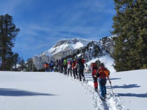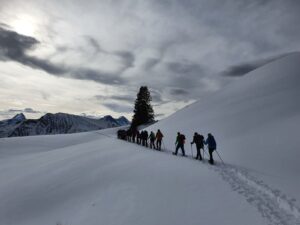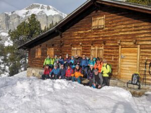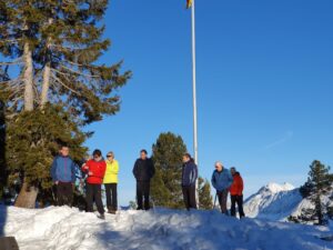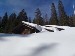 Bei strahlendem Sonnenschein, wolkenlosem Himmel und angenehm milden Temperaturen nahmen zwei Gruppen den Aufstieg zur Hohganthütte der SAC-Sektion Emmental am Samstagvormittag in Angriff. Vierzehn Teilnehmende schnallten sich die Schneeschuhe im Hübeli auf 1070 müM etwas östlich des Kemmeribodenbades an die Füsse, um danach mit ihren Rucksäcken samt reichlich Proviant via Schärpfeberg und Steiniwald zur Unterkunft aufzubrechen. Der recht anforderungsreiche Weg führte sie über eine Strecke von 4.8 km Länge mit insgesamt 756 m Auf- und 23 m Abstieg.